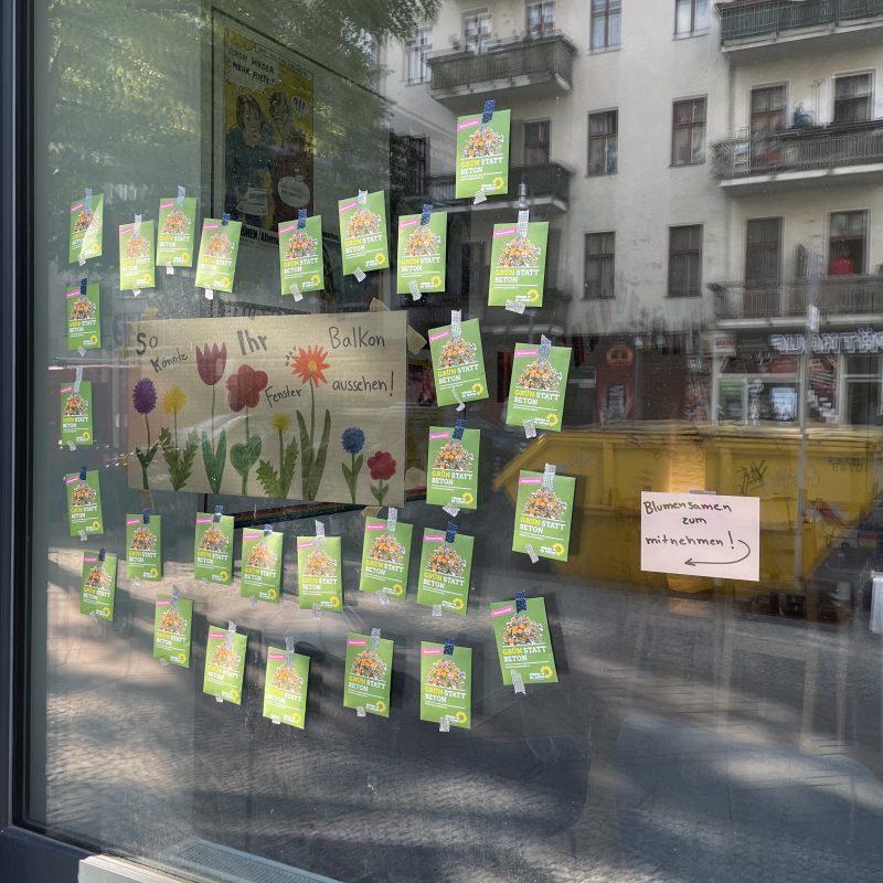 Den Tag der Bienen haben wir zum Anlass genommen wie jedes Jahr Blumensamen zu verteilen, die auf Fensterbank oder Balkon allen Bestäubern eine Freude bereiten. Die Biodiversität in unserer Stadt ist ein wichtiges Gut, dass wir alle fördern können. Damit die Verteilung sicher und kontaktlos passiert, haben wir die Samentüten am Fenster befestigt, sodass sie einfach direkt mitgenommen werden konnten. Wir haben uns sehr gefreut, dass innerhalb kürzester Zeit die Samen verteilt waren.